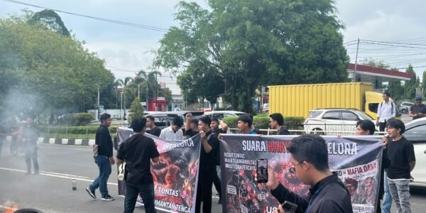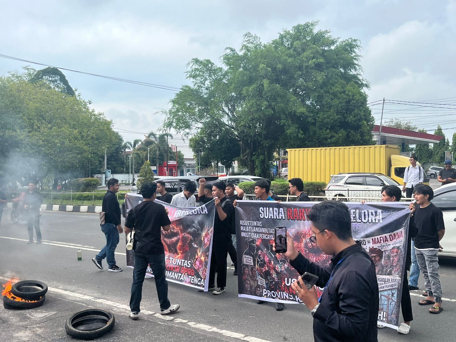 SEMMI Kalteng Bakar Ban di Depan Kejati, Desak Pengusutan Dugaan Penyalahgunaan Dana Pokir DPRD