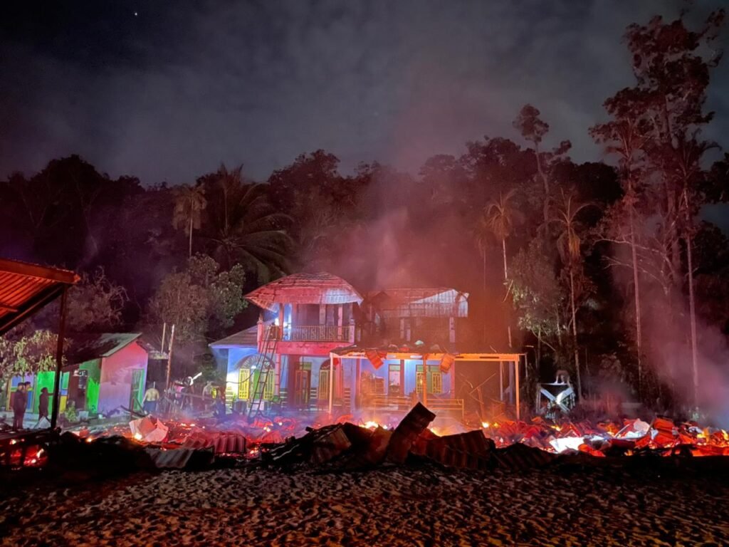 PRADANAMEDIA,GUNUNG MAS – Peristiwa kebakaran menghanguskan satu unit gedung sekolah dasar dan satu rumah tingkat milik warga di Desa Petak Bahandang, Kecamatan Kurun, Kabupaten Gunung Mas, Kamis malam (29/1/2026). Insiden tersebut terjadi sekitar pukul 22.00 WIB dan baru berhasil dipadamkan beberapa jam kemudian.