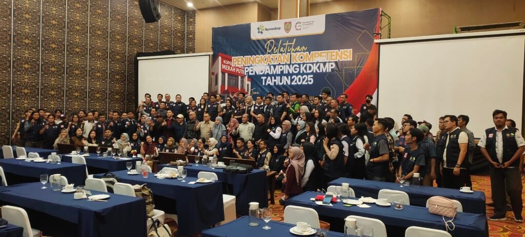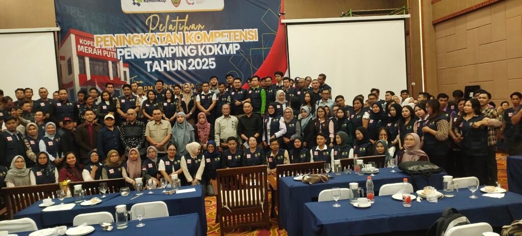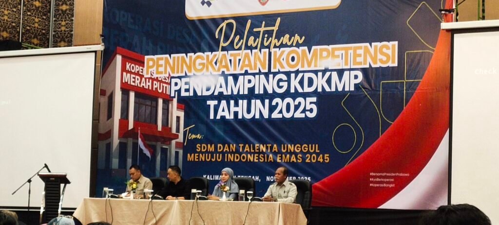 PRADANAMEDIA / PALANGKA RAYA – Dinas Koperasi dan UKM Provinsi Kalimantan Tengah resmi menutup kegiatan Pelatihan Peningkatan Kompetensi Pendamping KDKMP yang digelar di Hotel Bahalap, Ruang Seruyan III pada Sabtu (8/11). Kegiatan ini dihadiri langsung oleh Kepala Dinas Koperasi dan UKM Kalteng Rahwati, Ketua Pusat Koperasi Unit Desa (Puskud) Kalimantan Tengah Fajar Bawono, serta perwakilan Project Manajement Officer (PMO) Paulus.