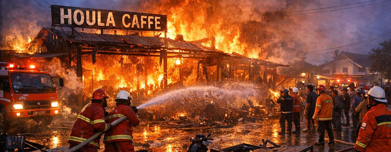 Kebakaran Saat Waktu Sahur, Houla Caffe di Palangka Raya Hangus Dilalap Api