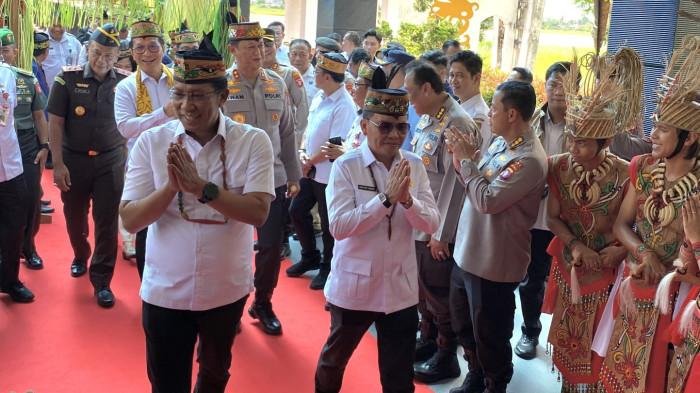 Dalam kunjungan kerja ke Palangka Raya, Rabu (5/11), Menteri Hukum RI, Dr. Supratman Andi Agtas, beserta rombongan, disambut dengan prosesi adat Dayak di Bandara Tjilik Riwut. Prosesi potong pantan dan lawang sakepeng menjadi simbol penghormatan tertinggi masyarakat adat kepada tamu kehormatan.