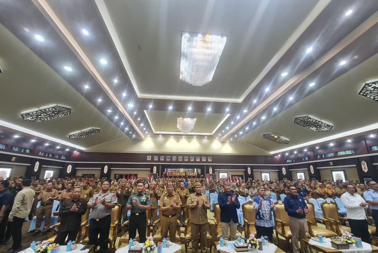 Dari jajaran Pemerintah Provinsi Kalteng tampak hadir Wakil Gubernur H. Edy Pratowo, Plt Sekda Kalteng Leonard S. Ampung, serta unsur Forkopimda Kalteng atau perwakilannya. Para bupati, wali kota, sekda kabupaten/kota, dan ratusan ASN juga memenuhi ruangan hingga ke lantai dua.