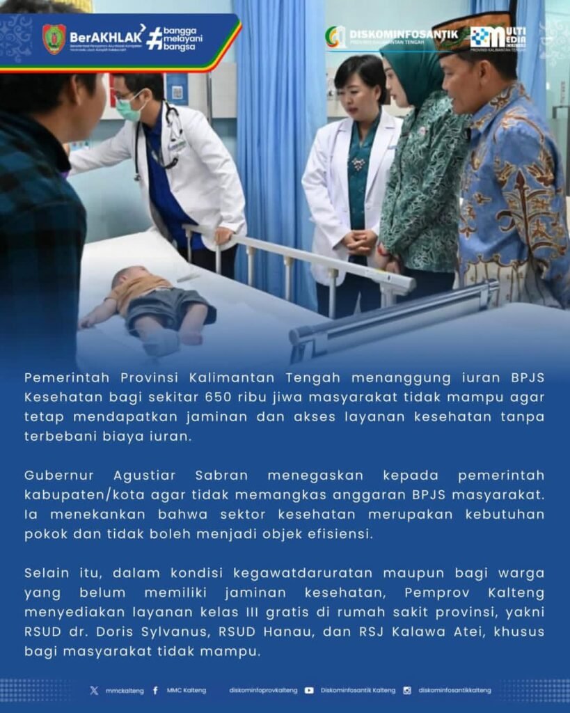 Kesehatan Tak Boleh Terpangkas, Pemprov Kalteng Tanggung Iuran BPJS 650 Ribu Warga Kurang Mampu