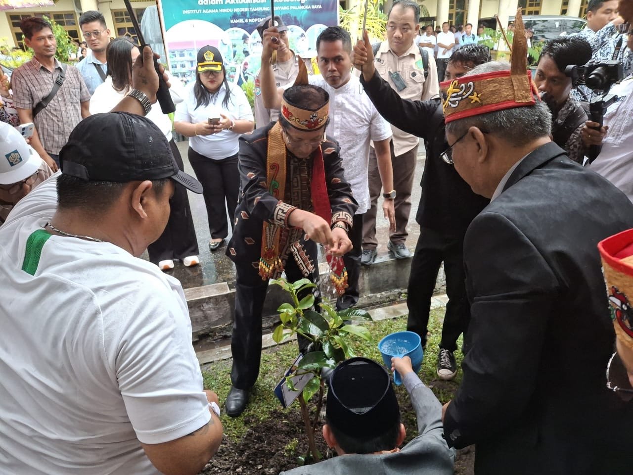 Pradanamedia/Palangka Raya, – Dalam semangat pelestarian lingkungan dan penerapan nilai-nilai ekoteologi, Menteri Agama Republik Indonesia, Prof. Dr. KH. Nasaruddin Umar, M.A., memimpin kegiatan Penanaman Pohon Bersama di halaman Kampus Institut Agama Hindu Negeri (IAHN) Tampung Penyang, Jalan G. Obos X, Kota Palangka Raya, Kamis (6/11) pukul 14.00 WIB.