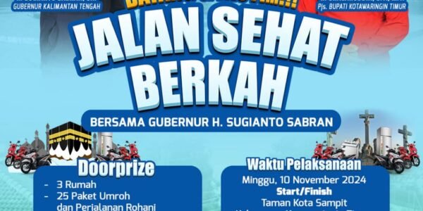 Sampit – Pada Minggu, 10 November 2024, akan diselenggarakan jalan sehat berkah bertempat di Taman Kota Sampit, yang direncanakan dihadiri oleh Gubernur Kalimantan Tengah dan Pjs. Bupati Kotawaringin Timur, Bapak H. Shalahuddin, S.T., M.T.. Acara ini akan dimulai pukul 06.00…