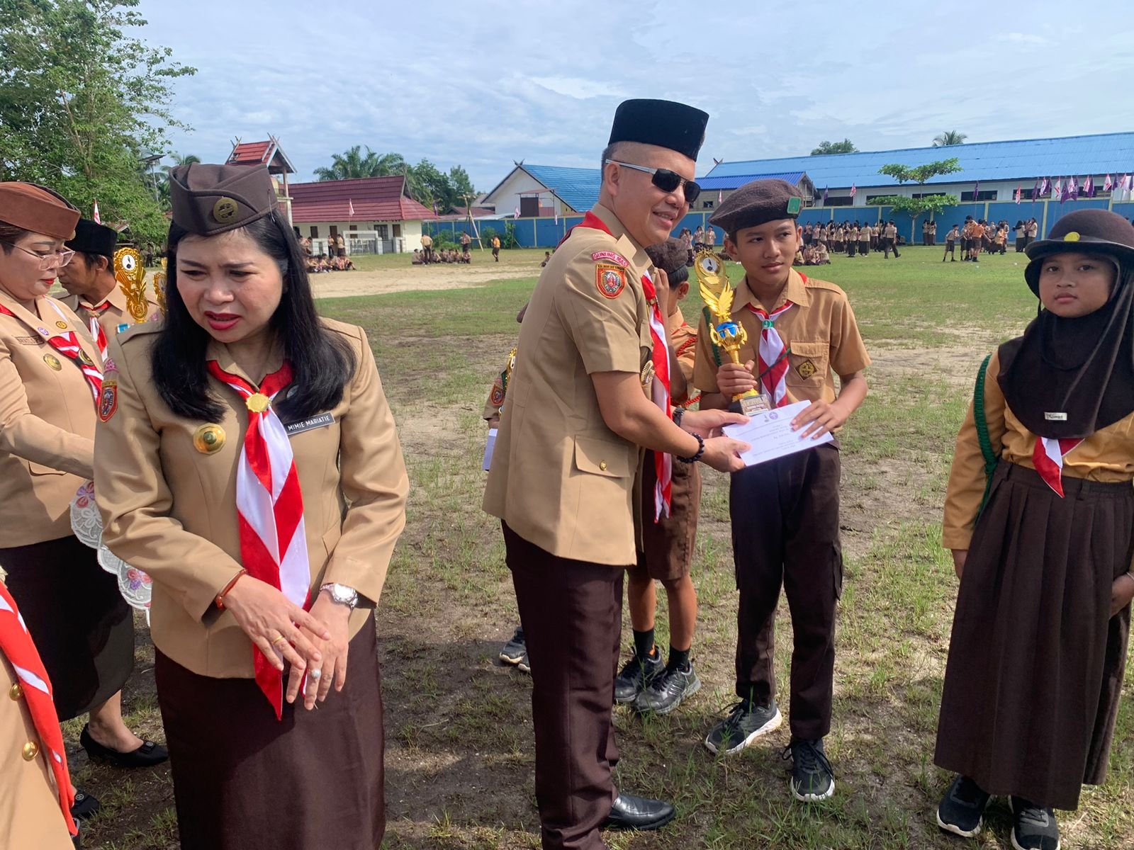 Pradanamedia/Gunung Mas, — Upacara peringatan Hari Pramuka ke-64 tingkat Kwartir Cabang (Kwarcab) Gerakan Pramuka Gunung Mas berlangsung khidmat di Lapangan Isen Mulang, Kuala Kurun.