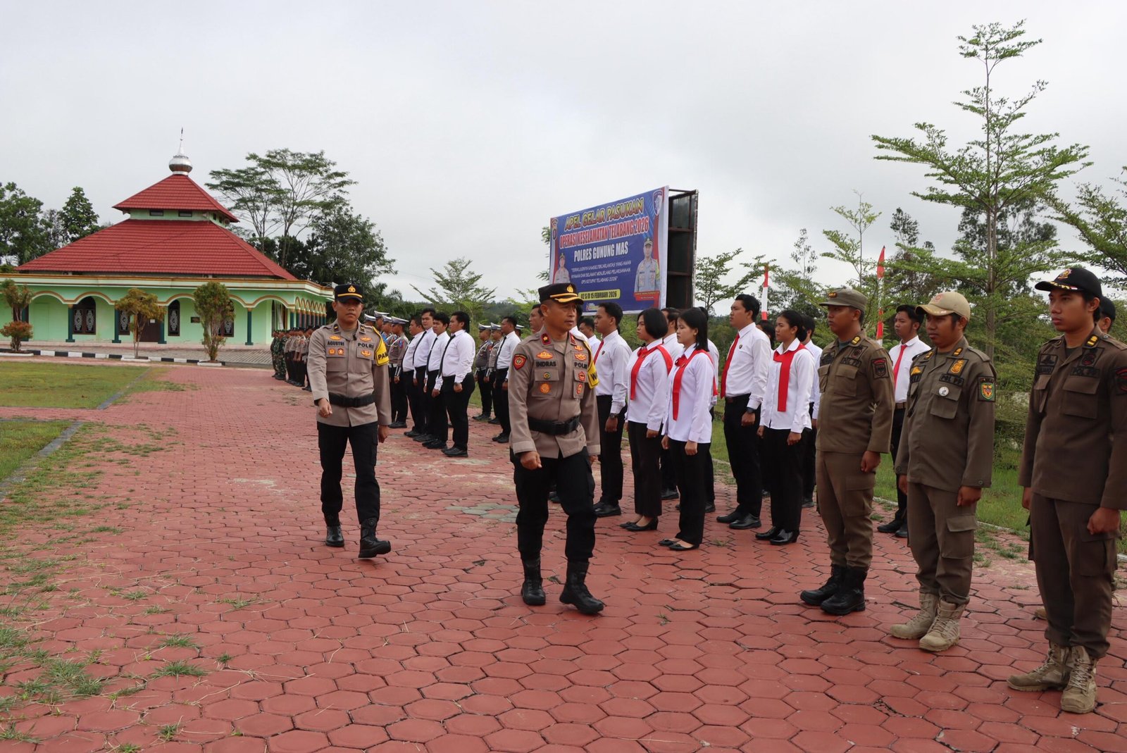 Bertindak selaku Inspektur Upacara yakni Wakapolres Gunung Mas, KOMPOL Indras Purwoko, S.H., dengan Perwira Upacara AKP Dindin Mahmudin, S.I.P., dan Komandan Upacara IPDA Agustri, S.H.. Dalam upacara tersebut dilakukan penyematan pita tanda operasi kepada perwakilan personel TNI, Polri, dan Satpol PP sebagai simbol dimulainya Operasi Keselamatan Telabang 2026.