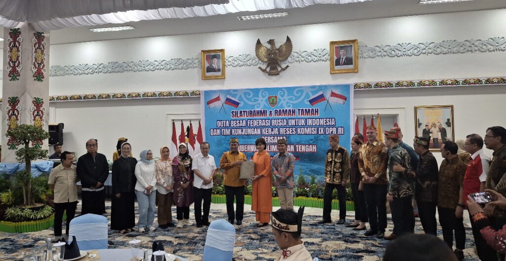 PRADANAMEDIA / PALANGKA RAYA – Gubernur Kalimantan Tengah bersama jajaran pejabat daerah menerima kunjungan kehormatan Duta Besar Federasi Rusia untuk Indonesia, H.E. Mr. Sergei Tolchenov, serta rombongan Komisi IX DPR RI dalam agenda silaturahmi dan ramah tamah yang digelar pada Senin malam, 6/10/2025, di Istana Isen Mulang, rumah jabatan Gubernur Kalteng.