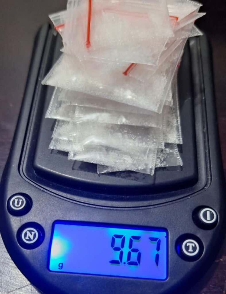 Dari hasil penggeledahan, petugas menemukan 28 paket plastik klip berisi serbuk kristal diduga narkotika jenis sabu dengan berat kotor mencapai 9,67 gram. Selain itu, turut diamankan sejumlah barang bukti lain berupa timbangan digital, plastik klip kosong, sendok sabu dari sedotan, satu unit telepon genggam, serta uang tunai sebesar Rp350.000 yang diduga hasil transaksi narkotika.
