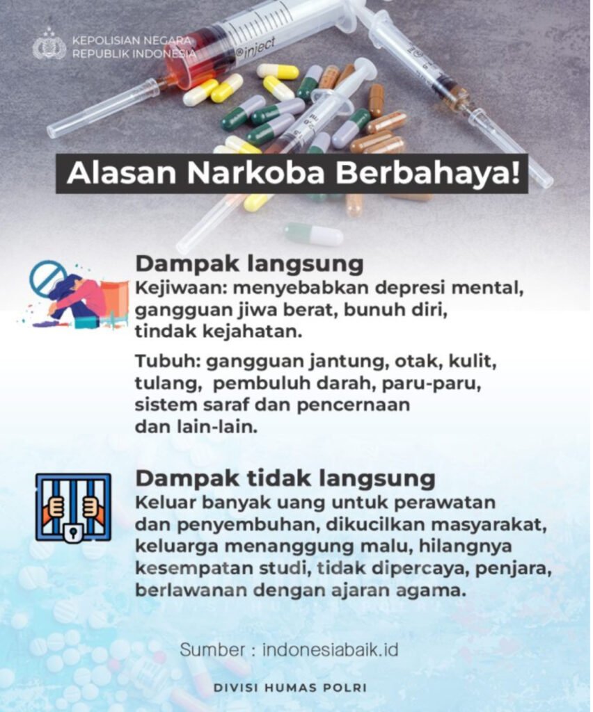Pradanamedia/Palangak Raya – Narkoba terus menjadi momok berbahaya yang mengancam kehidupan masyarakat, khususnya kaum muda. Dampaknya tidak hanya merusak tubuh, tetapi juga mengganggu kesehatan mental, kestabilan emosi, serta memicu berbagai masalah sosial. Penyalahgunaan zat terlarang ini dapat menghancurkan harapan masa depan seseorang, mendorong tindakan kriminal, hingga memporak-porandakan keharmonisan sebuah keluarga.