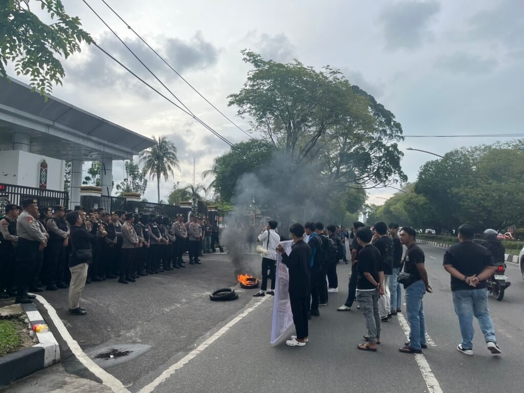 Dalam aksi tersebut, mahasiswa membawa sejumlah alat peraga berupa ban motor, bahan bakar Pertalite, pengeras suara, serta spanduk bertuliskan: “Suara Rakyat Bergelora, Usut Tuntas Dana Pokir DPRD Provinsi Kalimantan Tengah.”