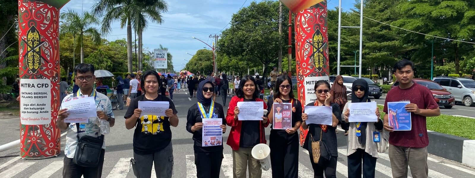 Palangka Raya – Dalam rangka memperingati Hari Anti Kekerasan Terhadap Perempuan (HAKTP), Srikandi Cipayung Plus Kota Palangka Raya menggelar aksi kampanye di area Car Free Day (CFD) Jalan Yos Sudarso, Minggu (8/12/2024). Aksi yang dimulai pukul 08.30 WIB ini dipimpin oleh Dida Paramida selaku Koordinator Lapangan dan diikuti oleh tujuh peserta dari gabungan organisasi GMNI, PMII, dan PMKRI.